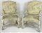 Coppia di poltrone in legno intagliato e dipinto con gambe e traverse a ossa di montone, braccioli terminanti a ricciolo (difetti)
