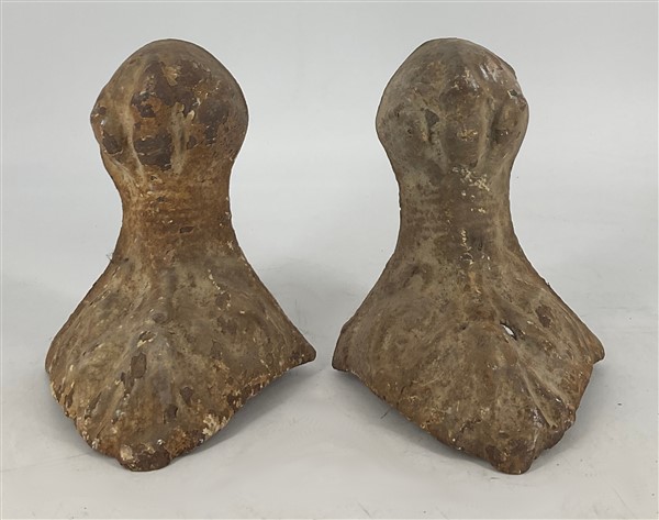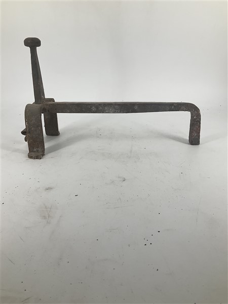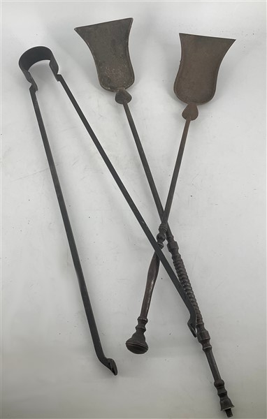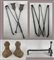 Cassetta contenente diversi alari e strumenti da camino in bronzo e altri metal