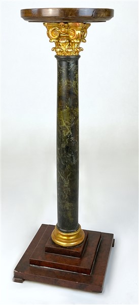 Lotto 771 | Gueridon in legno dipinto a finto marmo con sostegno a colonna e capitello dora