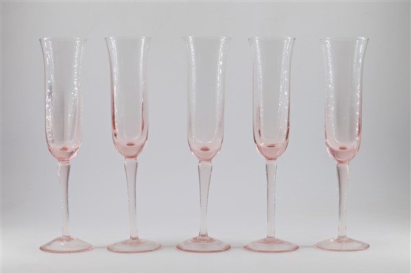 Lotto composto da circa centottanta flûte in vetro rosa, in quindici cartoni (d