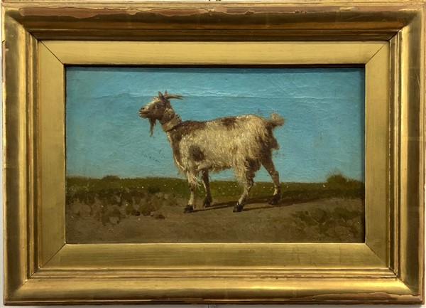 Ignoto del secolo XIX "Capra" olio su tela (cm 20x34) Al retro: cartigli e is
