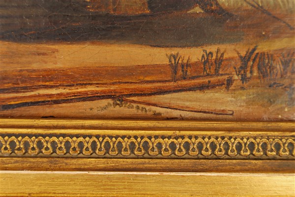 Lotto 810 | Scuola nordica del secolo XIX "Preparativi per la pesca" olio su tela (cm 18x