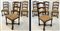 Gruppo di otto sedie in noce con schienale a tripla cartella sagomata e gambe t