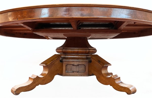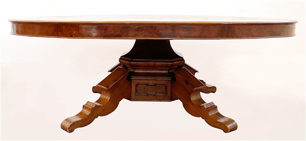 Lotto 818 | Grande tavolo da centro di forma ovale in noce e radica di noce, sostegno ottag