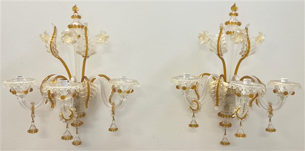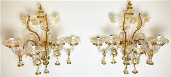 Lotto 819 | Lotto composto da due coppie di applique in vetro soffiato a tre e cinque fiamm