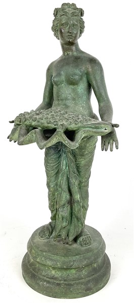 Arte del secolo XIX. Figura allegorica in bronzo a patina verde di gusto archeo