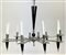 Lotto 829 | Lampadario in metallo cromato e legno ebanizzato a dieci bracci a forma di ragg