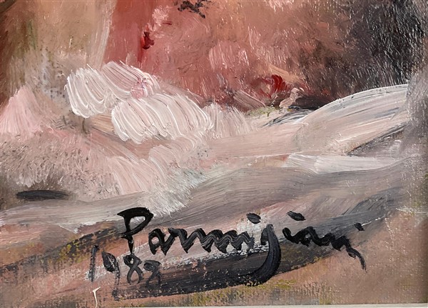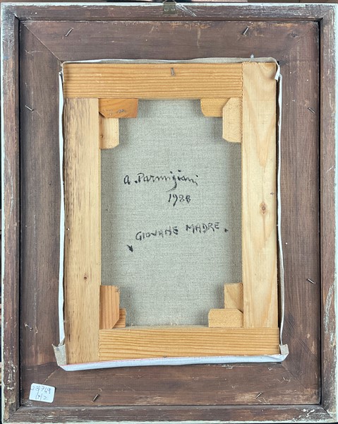 Lotto composto da un olio su tela di Aldo Parmigiani raffigurante giovane madre