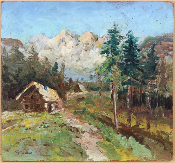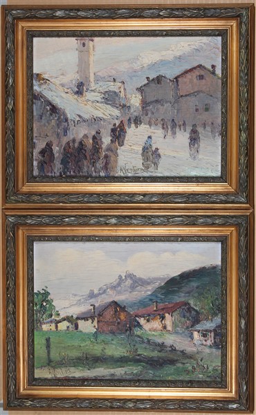 Lotto composto da tre dipinti ad olio raffiguranti "Scorci alpini" di diverse misure, supporti e artisti. Firmati in basso. Due dei quali in cornice
