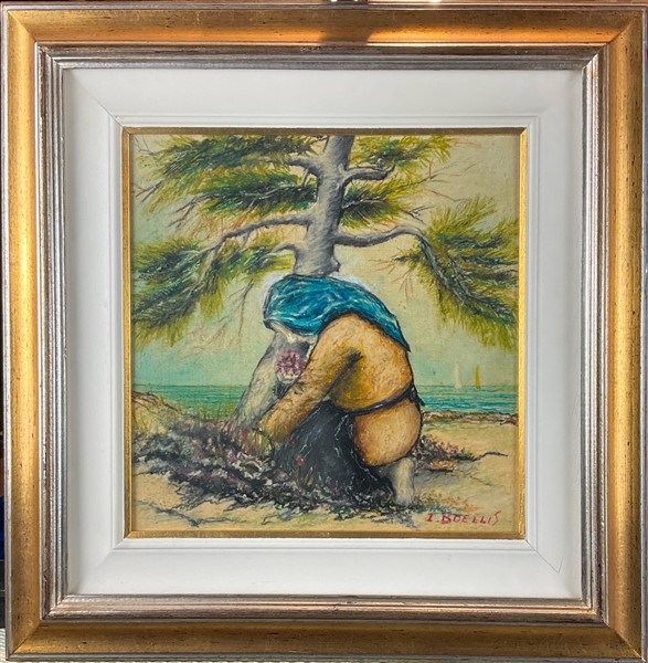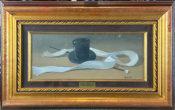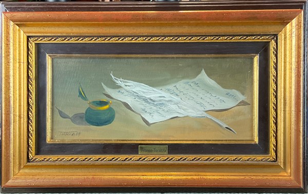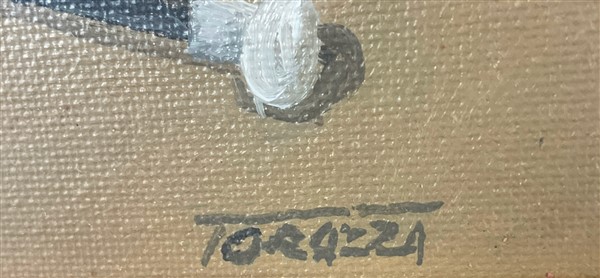 Lotto composto da due oli su cartone telato raffiguranti nature morte e firmati Torazza (cm 12x30) un disegno a pennarello su carta raffigurante donna con cappello, firmato Ugé e datato '78 (cm 33,5x49) e una tecnica mista su masonite raffigurante raccoglitrice di fiori, firmato Boellis (cm 30x30)