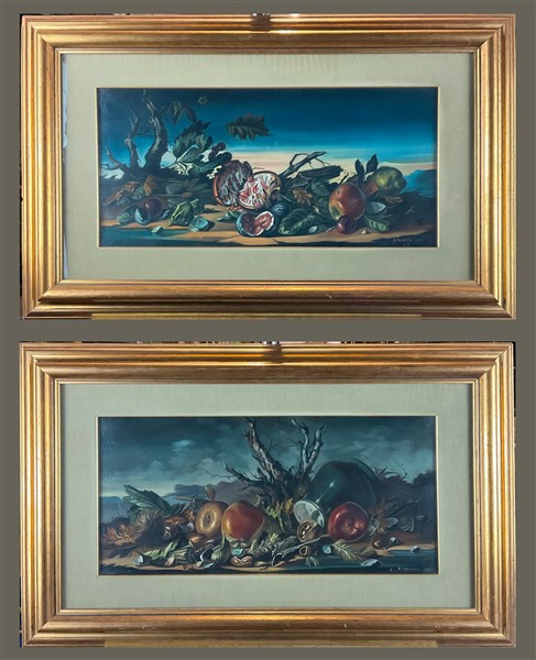 Alfio Presotto Due oli su tela raffiguranti nature morte (cm 29,5x60) firmati e