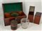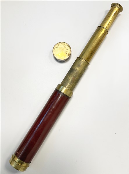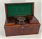 Lotto composto da un tea caddy con cofanetto impiallacciato in mogano, interno a scomparti con vaso in vetro molato. Inghiterra, secolo XIX (cm 33x16x16); unito ad un cannocchiale da marina inglese (difetti)