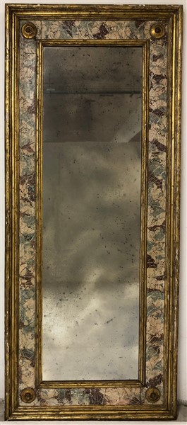 Specchiera in legno intagliato, dorato e laccato a finto marmo (cm 97x228) (difetti)
