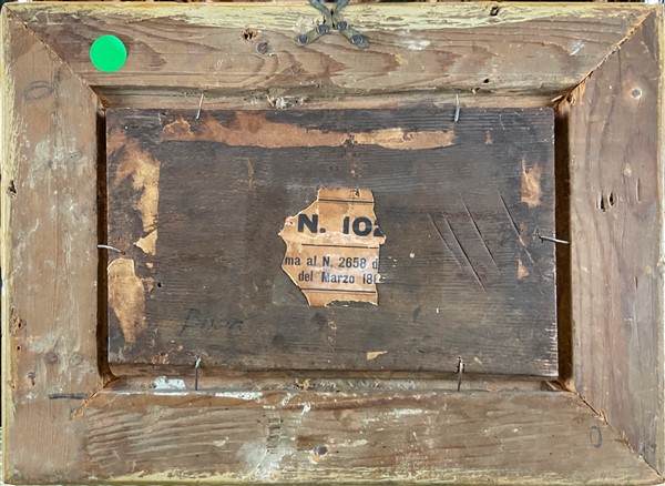 Ignoto di inizio secolo XIX "L'imbonitore" olio su tavola (cm 12x19,5) Al ret
