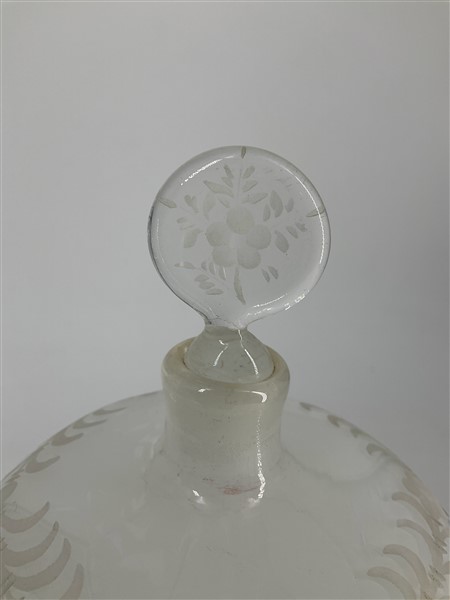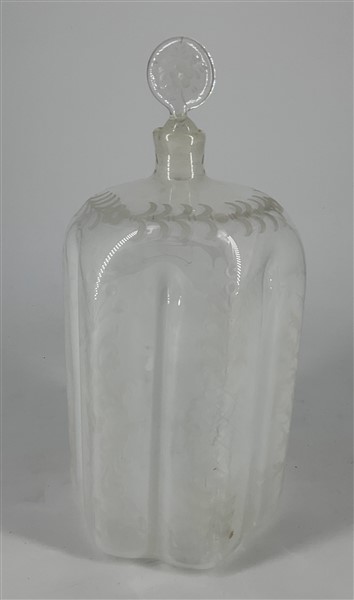 Bottiglia con tappo in vetro costolato e inciso a volute, secolo XIX (h cm 29) (difetti, tappo incollato)