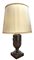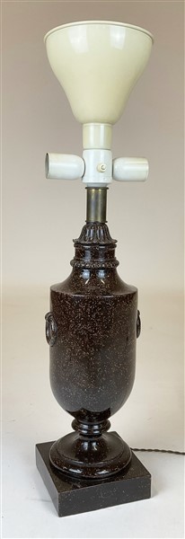 Lampada da tavolo in finto granito a forma di vaso su base quadrata (difetti) con paralume (h tot. cm 84)