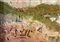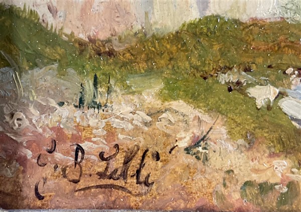Giovanni Battista Lelli "Paesaggio fluviale", olio su cartone (cm 14,5x23) firma