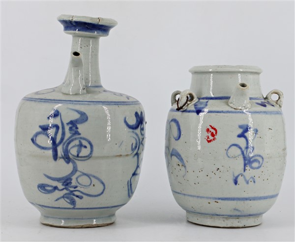 Lotto composto da due vasi in ceramica decorati in blu Manifattura orientale,