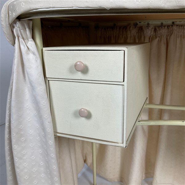 Toilette habillèe con struttura in metallo verniciato, cassettini in legno rivestiti in carta. Italia, anni '60 (cm 111x77x53) (lievi difetti)