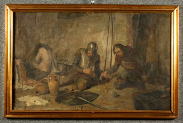 Dipinto olio su tela raff. ''PERSONAGGI CHE GIOCANO AI DADI''. Inizi XX...