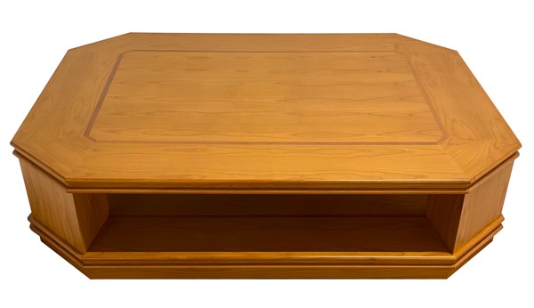 Tavolino basso da centro a due ripiani ottagonali in legno massello chiaro. Ita