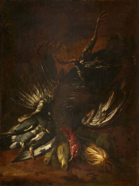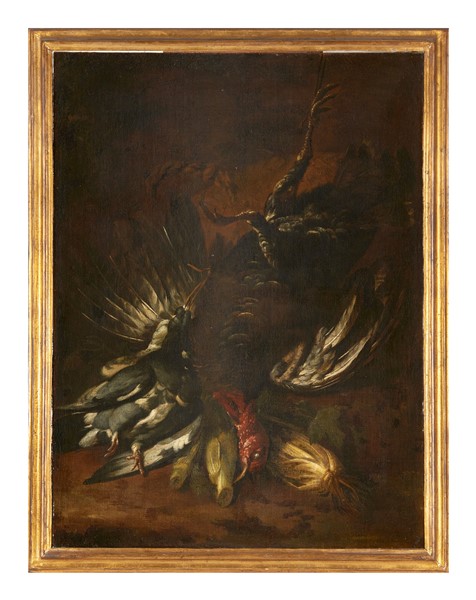 Felice Boselli (attr.) "Composizione con volatili" olio su tela (cm 98x73) in c