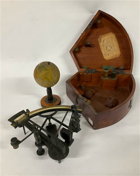 Lotto composto da un sestante inglese dell'ultimo quarto del secolo XIX in custodia di legno unito ad un globo terrestre delle edizioni Vallardi (h cm 19
