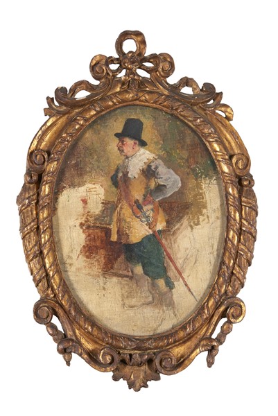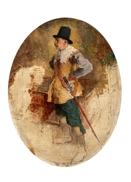 Lotto 1075 | Francesco Vinea (Attribuito) "Bozzetto per "Gentiluomo con spada"" olio su tel