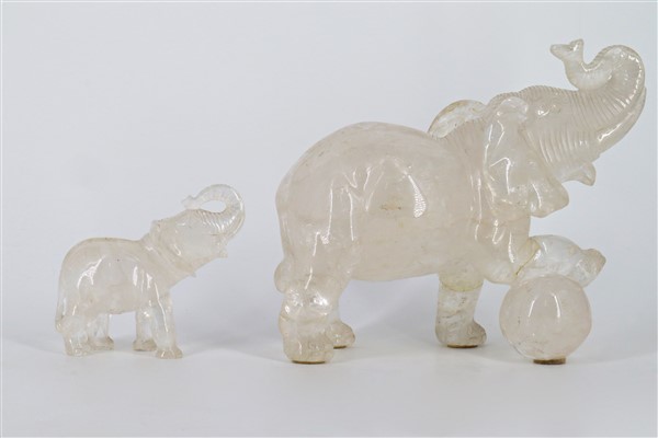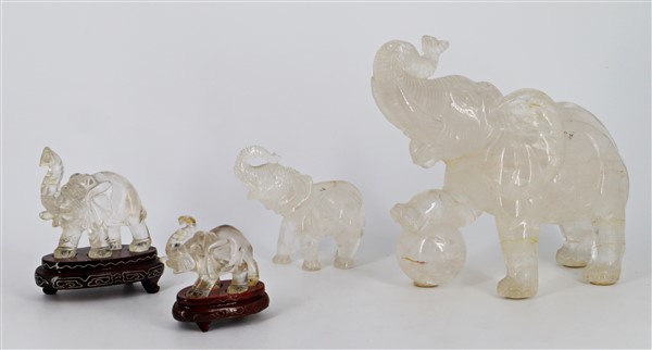 Lotto composto da quattro elefanti in cristallo e cristallo di rocca, di cui du