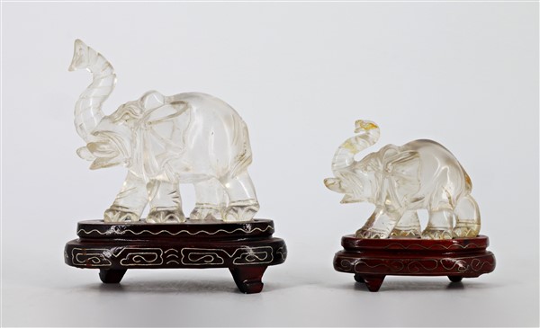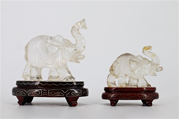 Lotto composto da quattro elefanti in cristallo e cristallo di rocca, di cui due con basi in legno