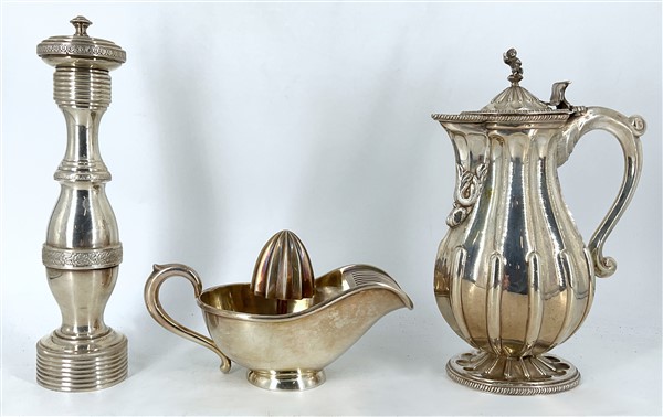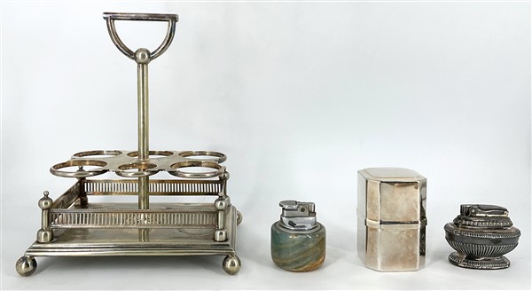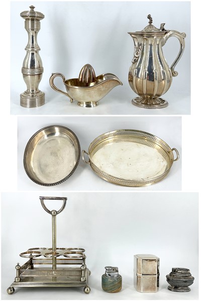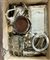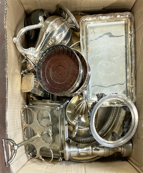 Cartone contenente numerosi oggetti in metallo argentato (difetti )