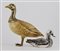 Lotto composto da due figure di papere, di cui una in metallo argentato ed altr