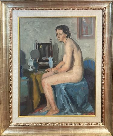 Ugo Vittore Bartolini "Nudo di donna seduta" 1960 olio su compensato (cm 65x52)