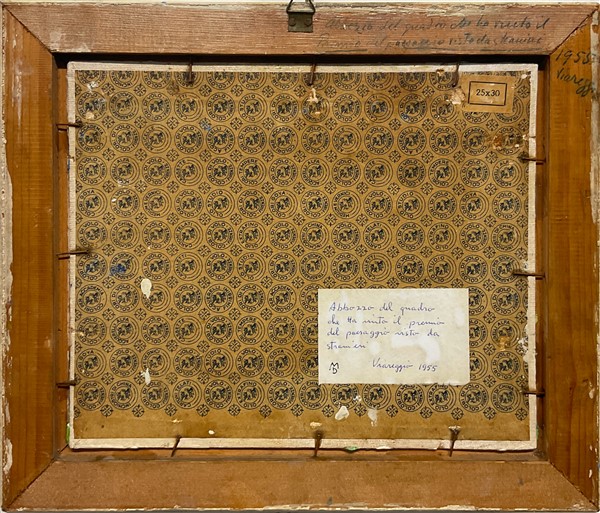 Ignoto "Paesaggio con alberi" olio su cartone telato (cm 24x29) firmato in bass