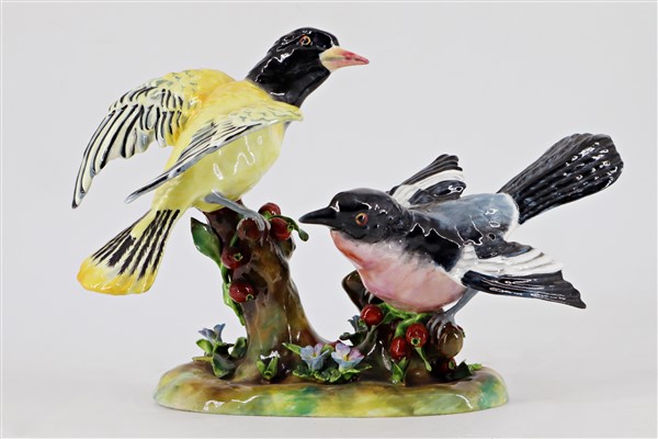 Lotto composto da un gruppo in porcellana raffigurante uccelli, marcato Crown S
