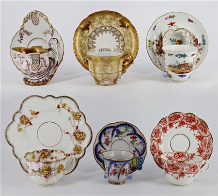 Manifatture differenti. Lotto composto da numerose tazzine con piattini in porc