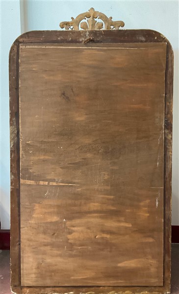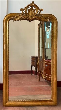Caminiera in legno e stucco dorati con cimasa traforata a volute fogliate (cm 180x104) (difetti)