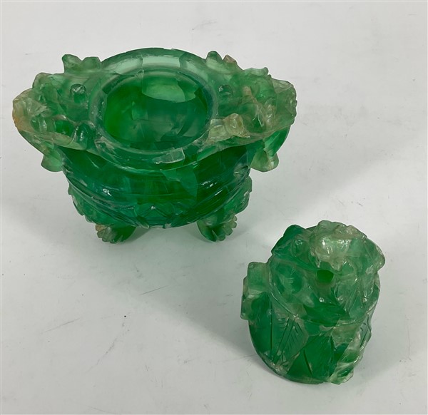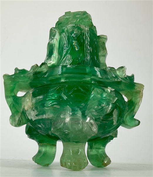 Incensiere con coperchio in fluorite. Cina, secolo XX (h cm 16) (difetti)