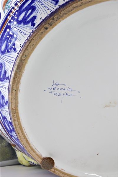 Manifattura La Vecchia Faenza, secolo XX. Grande cache-pot in ceramica decorata