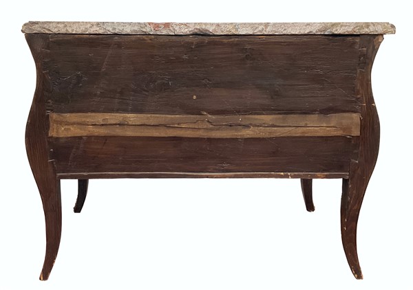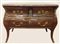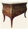 Antico cassettone di forma mossa ad un cassetto e due cassettini lastronato in