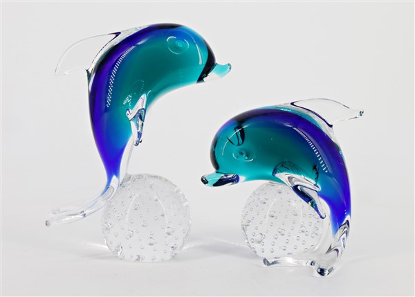 Lotto composto da sei figure di pesci e delfini in vetro policromo (h max cm 17
