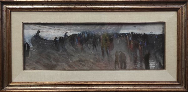 Tommaso Cascella (Attribuito) "Al porto" pastelli colorati su carta (cm 20x60)