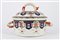 Manifattura del secolo XIX. Zuppiera biansata con coperchio in porcellana dipin