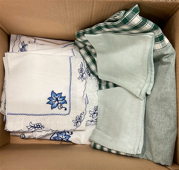 Cartone contenente biancheria per la casa di varie fogge e dimensioni (difetti)