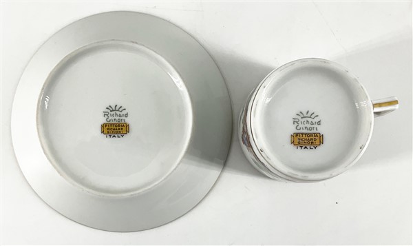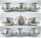 Manifatture diverse. Lotto composto da sei tazze con piatto in porcellana decor