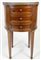 Mobiletto da centro di forma ovale a tre cassetti con gambe ad obelisco rovesci