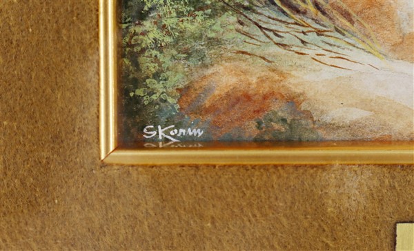 Coppia di paesaggi a diverse tecniche, di diversi autori e misure in cornice (