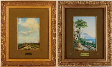 Coppia di paesaggi a diverse tecniche, di diversi autori e misure
