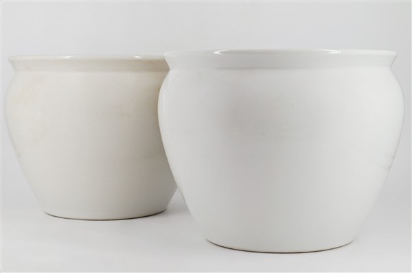 Coppia di cachepot in porcellana bianca Manifattura moderna, secolo XX (h max c