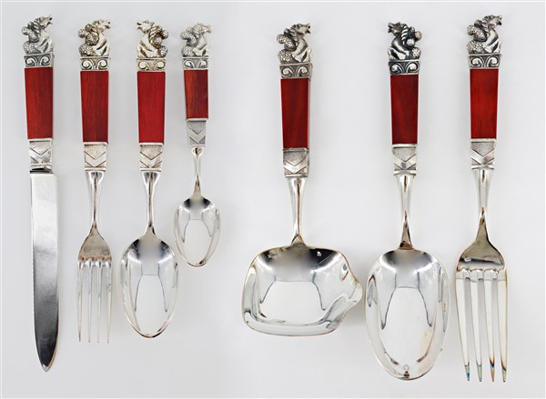 Manifattura Siècle Paris. Parte di servizio di posate in legno e metallo argent